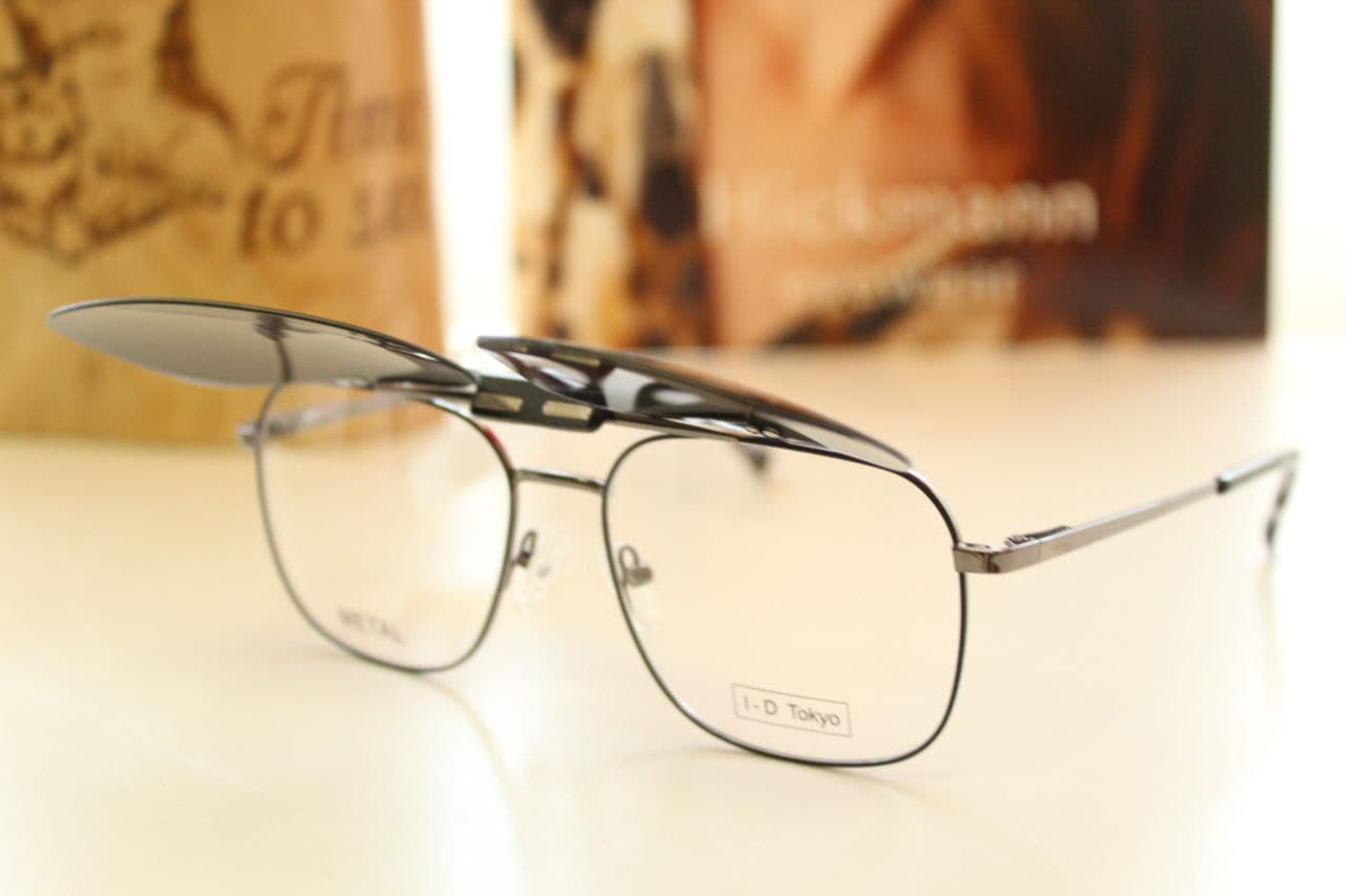 Embrace practical style with these dark metal, Aviator/Square frames from I-D Tokyo. They feature a convenient magnetic clip-on sunglass attachment, allowing you to instantly switch from prescription eyeglasses to polarized sun protection. The modern double-bridge design and sturdy construction offer a strong, contemporary, and highly versatile solution for all lighting conditions.